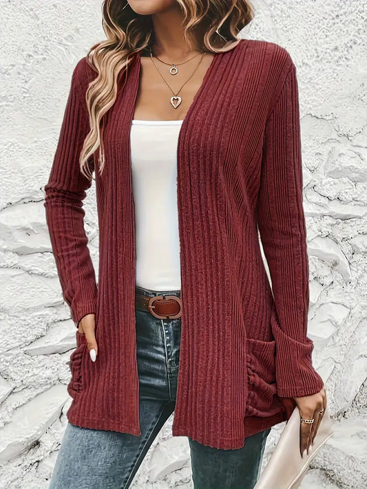 Sfrcord® Solide Strickjacke mit offener Vorderseite und Rippenmuster
